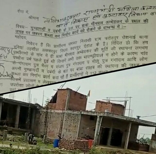 मामला कानपुर देहात तहसील अकबरपुर ब्लॉक सरवन खेड़ा थाना रनिया जनपद कानपुर देहात ग्राम सभा फतेहपुर रोशनाई के बाबा साहब डॉक्टर भीमराव अंबेडकर पार्क के नाम से छोड़ी गई। जमीन पर फिर से निर्माण कर कराया जा रहा है। पूर्व में इस अवैध कब्जे की शिकायत उप जिलाधिकारी महोदया से की गई थी। जिसके उपरांत तत्कालीन क्षेत्रीय लेखपाल द्वारा अवैध निर्माण कार्य रुकवा दिया गया था। क्योंकि अवैध निर्माण करता आवास आवंटन सुधा भूमि से अधिक भूमि पर निर्माण कर रहा था। अधिकारियों के द्वारा मना करने पर फिर से दोबारा तेजी से निर्माण कार्य कर रहा है। राजस्व अधिकारियों के द्वारा मना करने के बावजूद भी अंबेडकर पार्क के नाम से छोड़ी गई जमीन पर फिर से जबरन भूमि पर कब्जा करने से निर्माण कार्य हो रहा है। निर्माण करता के नाम गंगाराम पुत्र भैरव नीलू पुत्र गंगाराम व संजय पुत्र गंगाराम व अमर कीर्ति पुत्री गंगाराम शांति देवी पत्नी गंगाराम ने मिलकर निर्माण कर बहुत तेजी से कर रहे हैं। गांव के लोग मना करते हैं तो उनको गाली गलौज और फर्जी मुकदमे में फंसाने की धमकी देते हैं।