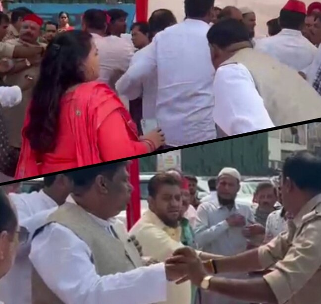 मारपीट के बीच हुआ सपा प्रमुख अखिलेश यादव का स्वागत – समर्थकों में चले लात घूसे