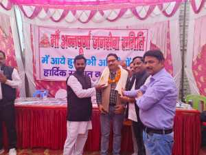 छिबरामऊ नगर में सौरिख रोड पर सिद्ध पीठ मां कालिका देवी मंदिर के सामने गरीबों को 10 रुपए की थाली में स्वादिष्ट भोजन मिलता है। जनसेवा का एक वर्ष पूर्ण होने पर मां अन्नपूर्णा जन सेवा समिति ने सम्मान समारोह आयोजित किया। इस अवसर पर मुख्य अतिथि एसडीम उमाकांत तिवारी ने समिति की इस योजना की सराहना करते हुए कहा गरीब का पेट भरना सबसे बड़े पुण्य का कार्य है। उन्होंने कहा आज के दौर में मात्र 10 रुपए थाली में भोजन मिलने की कल्पना तक नहीं की जा सकती लेकिन नगर के समाजसेवी युवाओं विपिन गुप्ता व दीपक गुप्ता ने इसे प्रारंभ करके प्रेरणादायक कार्य किया है। यह दोनों छोटी रसोई बड़ा दिल करके चला रहे हैं। समिति के सहयोग के लिए मैं हर समय तैयार हूं। विशिष्ट अतिथि पालिकाध्यक्ष मनोज दुबे ने कहा आज के दौर में केवल 10 रुपए में थाली भोजन देना बहुत बड़ी बात है। यह व्यवस्था आगे भी सुचारू रूप से चलती रहे, इसमें हम सभी सहयोग प्रदान करेंगे। संचालन कर रहे विख्यात कवि ओमप्रकाश शुक्ल ‘अज्ञात’ ने कहा दोनों युवाओं ने 10 रुपए थाली भोजन की शुरुआत नगर में शांतिनिकेतन विद्यालय के बाहर वर्ष 2017 में की थी। बीच में लॉकडाउन के कारण काम रोकना पड़ा लेकिन इसके बाद यहां पर फिर से शुरुआत की गई। इससे पूर्व सरस्वती विद्या मंदिर की बालिकाओं यशस्वी पांडेय व जया राठौर ने सरस्वती वंदना एवं स्वागत गीत प्रस्तुत किया। माल्यार्पण, शाल एवं प्रतीक चिन्ह भेंट करके अतिथियों का स्वागत किया गया।