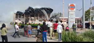 बताते चलें कि बुधवार की दोपहर राष्ट्रीय राज्यमार्ग छिबरामऊ की ओर से एक डीसीएम कानपुर की ओर जा रही थी। जैसे ही डीसीएम पाल चौराहे के निकट पहुंची, तभी इंजन से धुंआ उठने के साथ ही आग लग गई। डीसीएम का चालक इससे पहले कुछ समझ पाता, आग ने तेजी पकड़ ली। खास बात यह रही, कि जिस जगह डीसीएम में आग लगी, उससे चंद कदम की दूरी पर पेट्रोल पंप स्थित है। डीसीएम में आग लगने के बाद ड्राइवर के नीचे उतरकर चिल्लाने के बाद पेट्रोल पम्प पर काम कर रहे कर्मचारी सजग हो गये। आनन फानन में पेट्रोल पंप तक तेज हवा चलने के कारण कहीं आग ना पहुंच जाये, मौके पर पैनी की व्यवस्था करते हुये कर्मचारियों द्वारा फायर बिग्रेड टीम को आग लगने की सूचना दी।