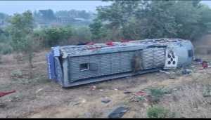 Kannauj New : एक्सप्रेस वे पर डबल डेकर बस खाई में पलटी, पच्चीस यात्री घायल